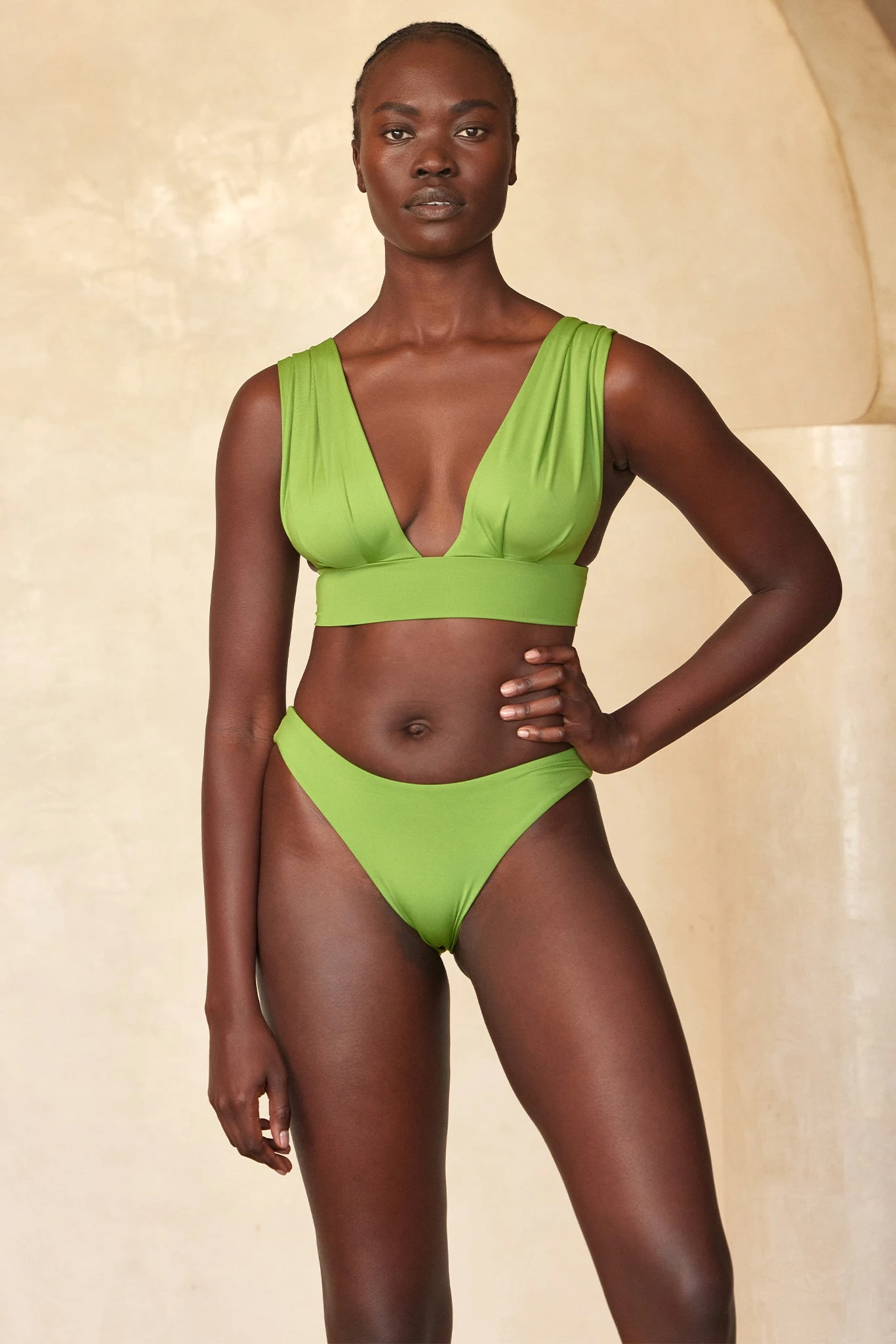 The Aruba Top is an elegant over-the-shoulder style that offers flattering support to a wide range of sizes. The pleated cups allow for a customized bust coverage and the adjustable back tie closure gives you a supportive fit. Perfect for A-G cups!