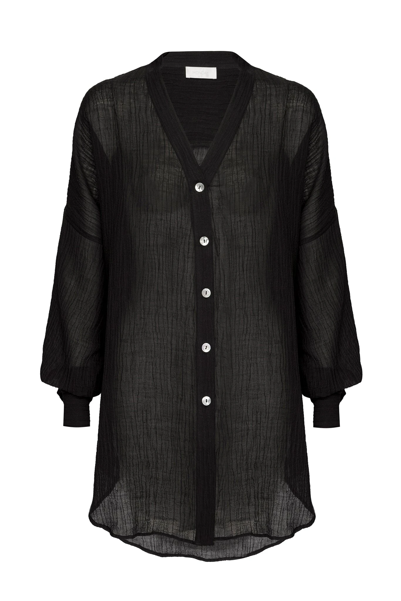 The ultimate beach to bar look can be achieved in the Barcelona Tunic. With an airy oversized fit, this transitional piece can be worn open, over your favorite swimwear or tied at the front with cute pants. Complete with side slits, flowy sleeves and center front seashell buttons.