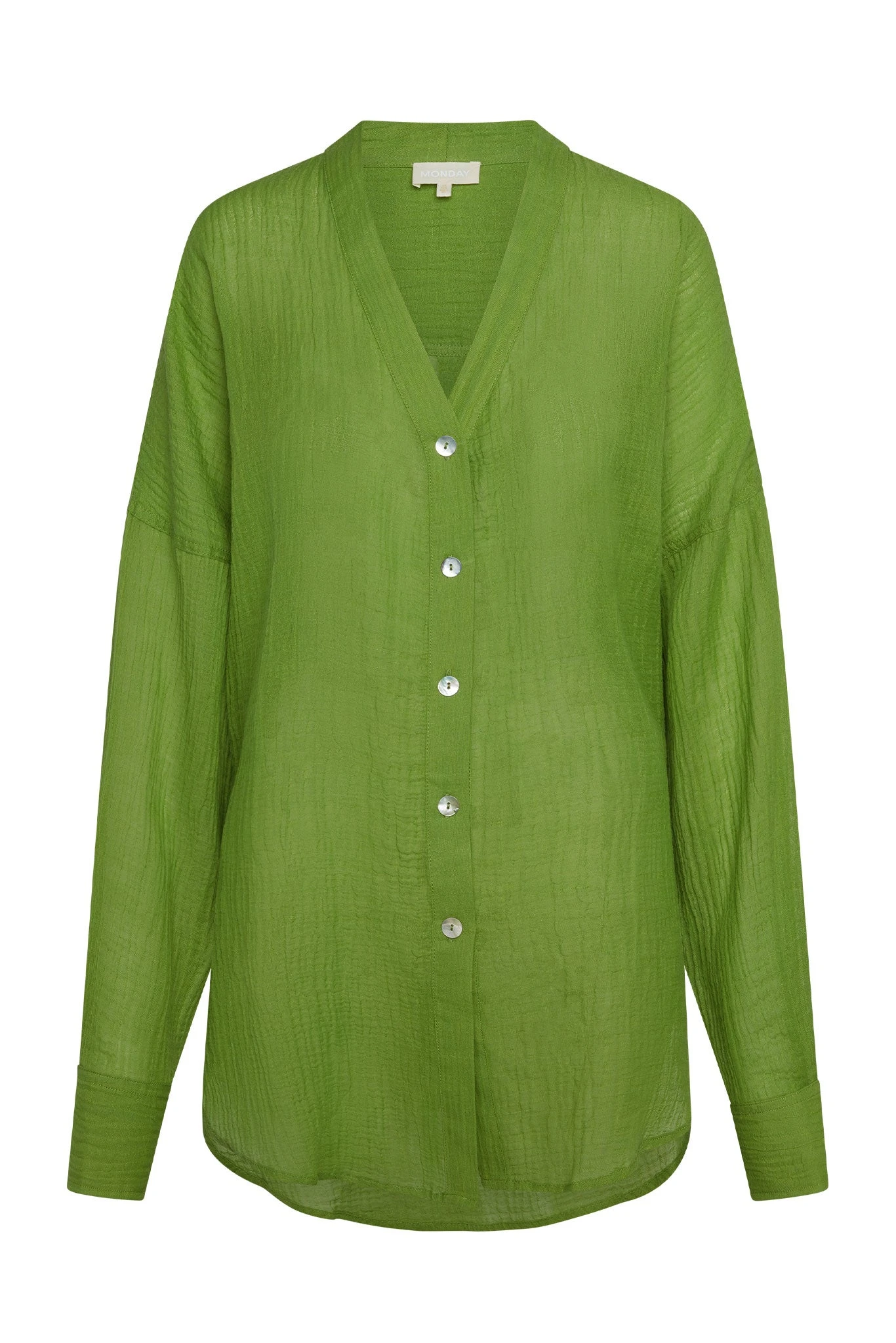 The ultimate beach to bar look can be achieved in the Barcelona Tunic. With an airy oversized fit, this transitional piece can be worn open, over your favorite swimwear or tied at the front with cute pants. Complete with side slits, flowy sleeves and center front seashell buttons.