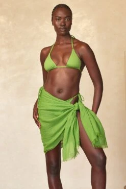 Our founders curated a special swim collection in celebration of our 10 year anniversary by hand-selecting a luxurious, satin shiny fabric that exudes confidence with every wear. This exclusive material offers a subtly distinct fit, setting it apart from our signature recycled jersey fabric that doesn’t stretch like our signature jersey, providing a more tailored and structured fit swimwear experience for you.