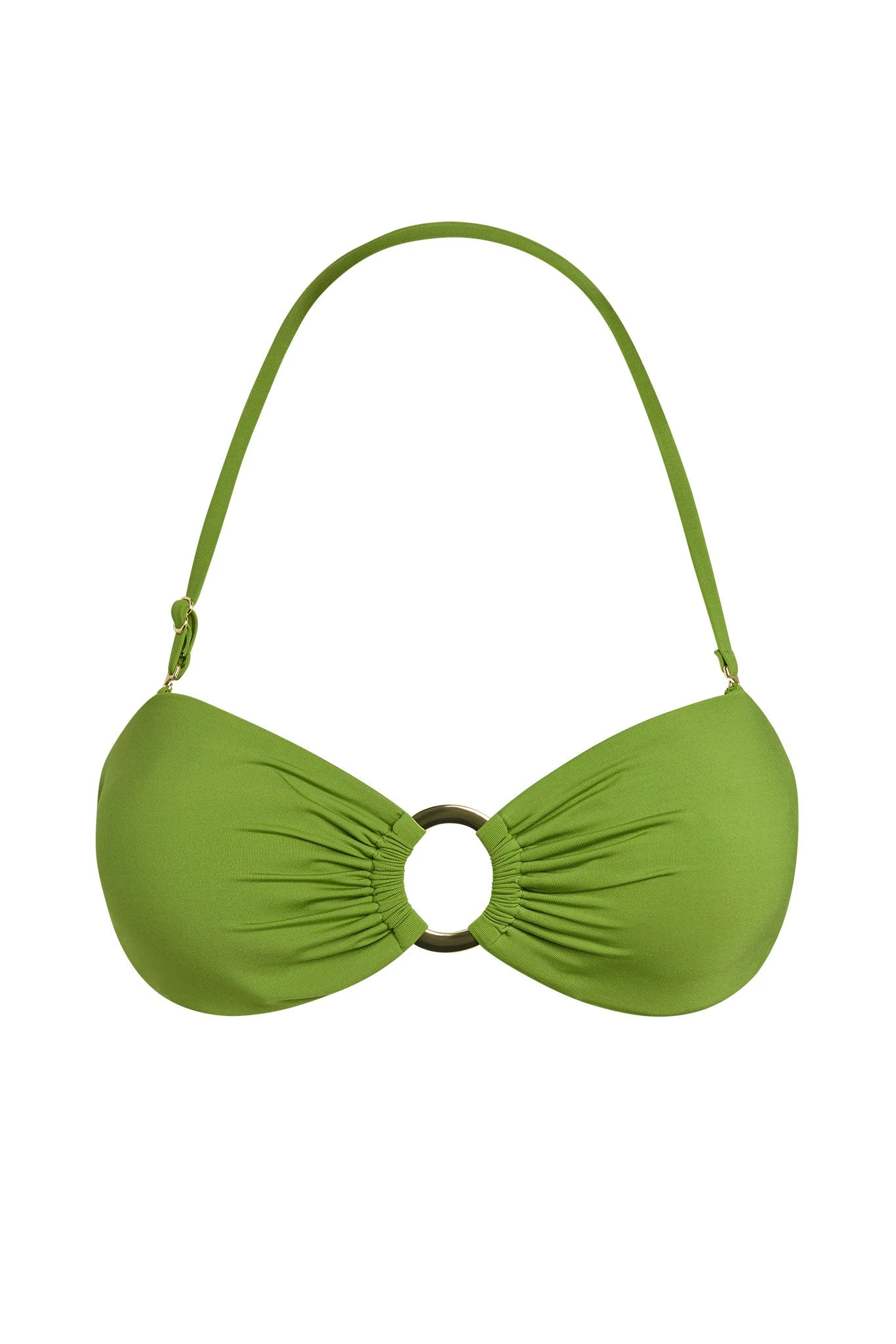 Soak in the sun while wearing the Costa Rica Top. This bandeau style top features a center front tortoise ring hardware and a removable halter strap that can be adjusted for the perfect amount of lift and support for all your beach adventures. Perfect for cup sizes A-D!