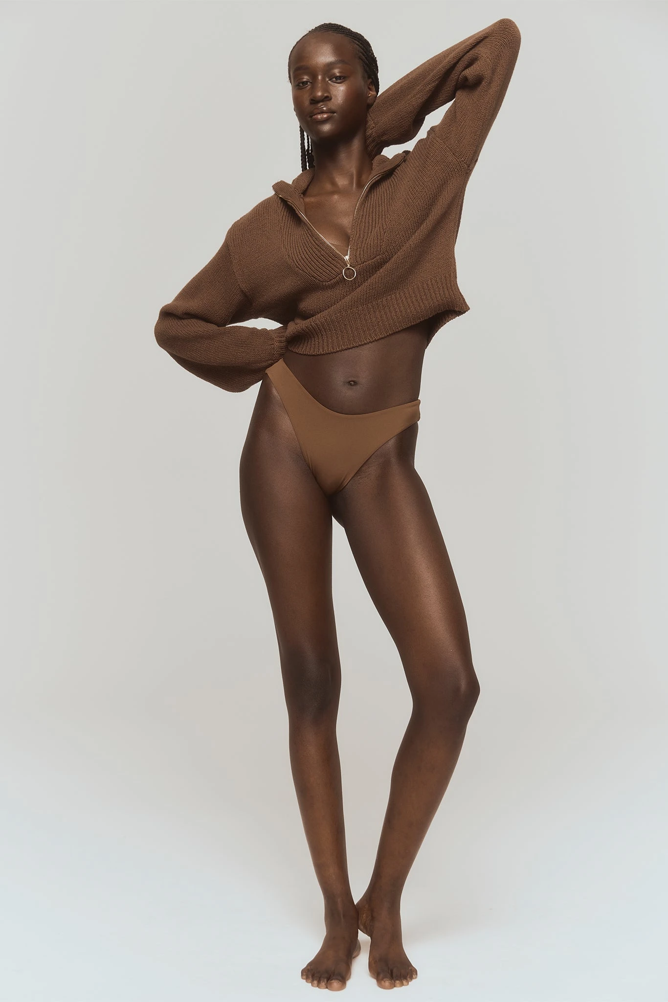 Our Lisbon Quarter Zip Sweater was made to give your closet the perfect transitional piece. This chunky Jersey knit pull over is great to feel cozy in any weather. Pair with your favorite denim or our Porto Short.Â