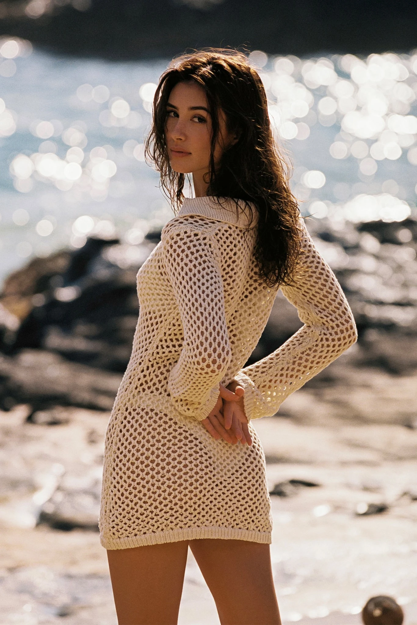The Newport Dress is a chic & effortless mini dress that can go from vacation to brunch. This resort inspired collared dress is crafted from a soft breathable cotton that features a v-neckline and an open knit crochet design– that’s perfect for all day comfort!