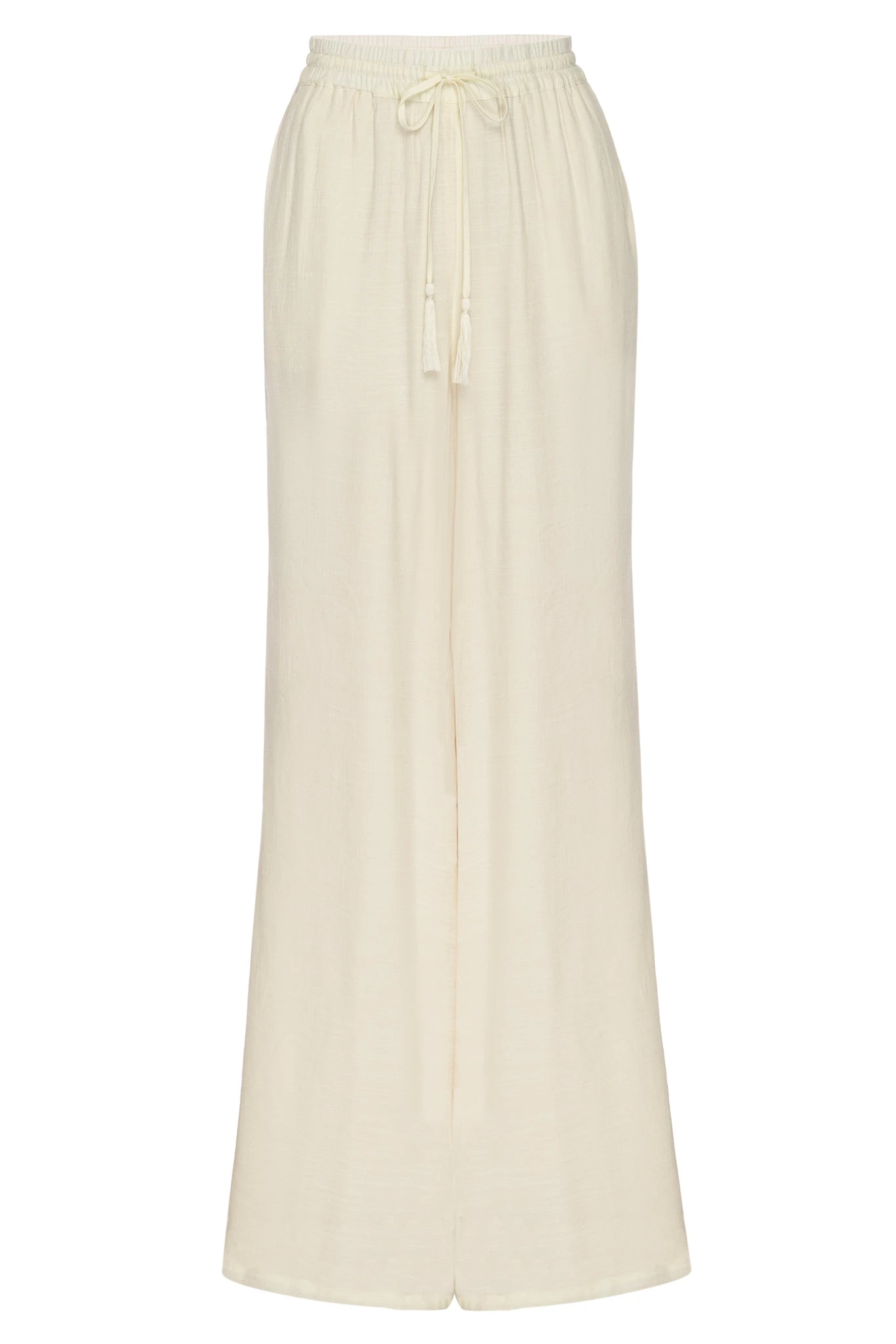With its small, tassel tie detail and flared wide-leg, the flowy Tahiti Pant is the perfect beach pant. Fully lined and featuring an elastic draw-stringed waist, it will flatter every figure.